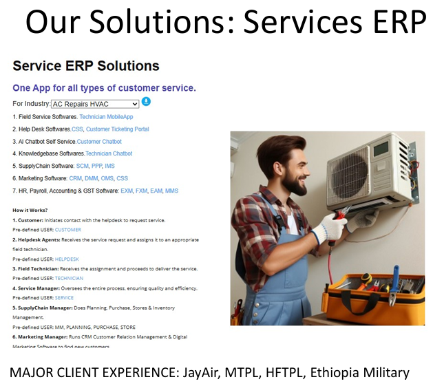 Company implemented SoftRobot.biz’s end-to-end Services ERP, designed for HVAC/AC field service management. Key modules deployed: